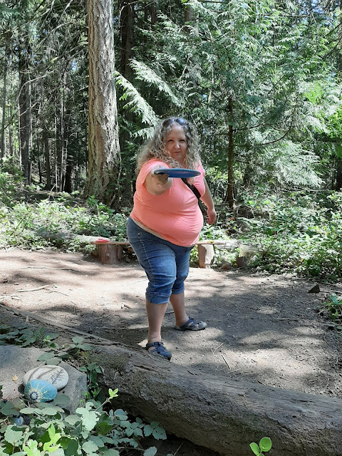 we decided to do some frisbee golf. there is a little circuit on the bottom of the mountain for stiff legs huffy bodies like myself and we went there. amy generously shared her frisbee golf knowledge with me. the most fun tidbit was how to make the disc curve.